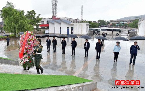 習(xí)近平考察寧夏首站到固原,冒雨向紅軍長(zhǎng)征會(huì)師紀(jì)念碑敬獻(xiàn)花籃