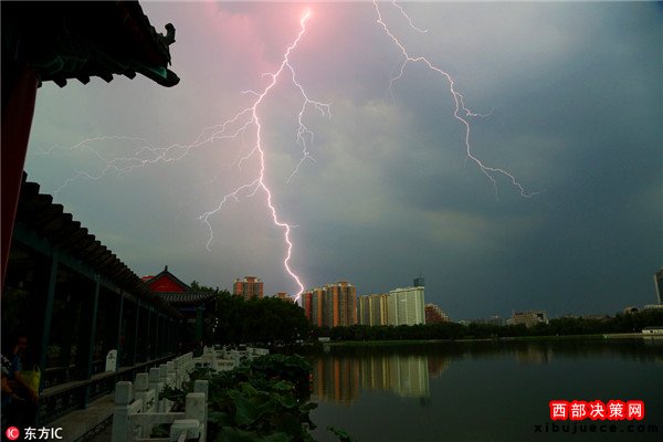 雷雨突如其來(lái)光顧北京城區(qū) 閃電劃破天際