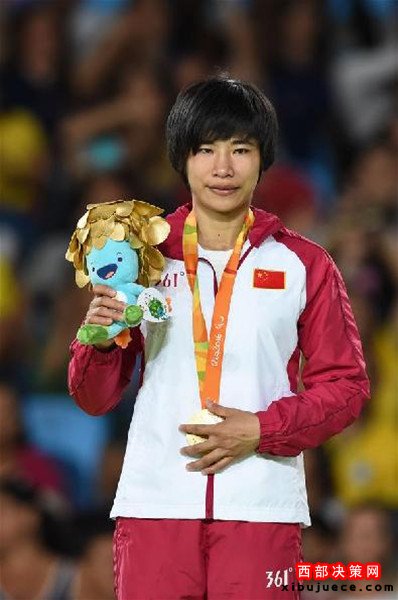 9月8日,李麗青在頒獎儀式上。當日,在2016年里約殘奧會柔道女子48公斤級決賽中,中國選手李麗青戰(zhàn)勝德國選手布魯西希,獲得冠軍。