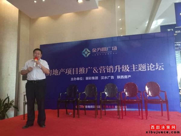由陜西麗彩實業(yè)集團、陜西漢水廣告文化傳媒有限公司、《陜西房產(chǎn)》共同主辦的“房地產(chǎn)項目推廣與營銷升級主題論壇”,于2016年9月8日下午在咸陽金方圓廣場項目營銷中心圓滿舉辦。兩輪的嘉賓對話結束后,麗彩集團總裁高彥生先生代表郁鵬董事長登臺演講,他側重對論壇成果進行了總結和點評。(見下圖)