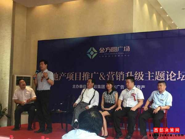 由陜西麗彩實業(yè)集團、陜西漢水廣告文化傳媒有限公司、《陜西房產(chǎn)》共同主辦的“房地產(chǎn)項目推廣與營銷升級主題論壇”,于2016年9月8日下午在咸陽金方圓廣場項目營銷中心圓滿舉辦。出席論壇第一輪主題對話的嘉賓有:陜西麗彩實業(yè)集團金方圓廣場項目營銷中心營銷總監(jiān)陳娟女士、咸陽萬隆家居博覽中心總經(jīng)理陳琪先生、科教網(wǎng)創(chuàng)始人李偉偉先生、陜西宏泰稅務師事務所所長楊俊岑先生、陜西馬氏集團董事長馬勝利先生。據(jù)陳娟女士介紹:金方圓廣場位于人民路七廠十字西側,總建筑面積45萬平米,總體布局共分為5層商業(yè)(局部6層)、24層精裝修小戶型公寓、20層寫字樓、星級酒店,疊拼、多層洋房,高層住宅,停車位3127個,還包括幼兒園、會所等相關社區(qū)配套。 金方圓廣場位于咸陽中心區(qū)的核心地帶,處于不可復制的區(qū)域,有著不可復制的發(fā)展前景。全面引入一站式消費理念,建成后,將是集商業(yè)、辦公、精裝公寓、酒店、娛樂、住宅為一體的咸陽繁華地段的城市綜合體,是咸陽商業(yè)的地標式建筑。金方圓廣場以45萬平米商業(yè)綜合體完美嵌入,將繁榮鼎盛、時尚經(jīng)典統(tǒng)領于一身,堪稱城市精神的扛鼎之作,比肩世界的國際綜合體,為俯視世界的人,尋找一種至高的角度?。ㄒ娤聢D)