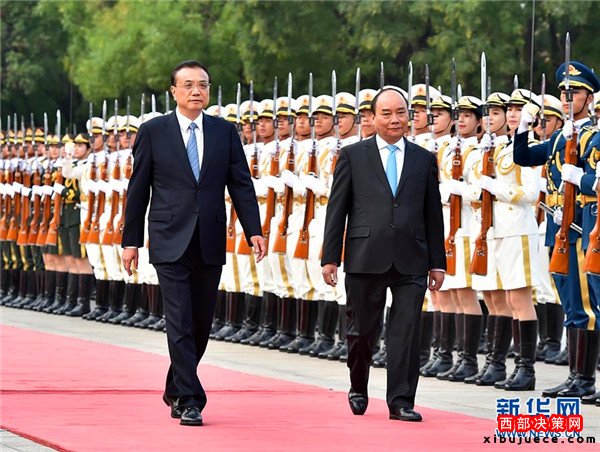 9月12日,國(guó)務(wù)院總理李克強(qiáng)在北京人民大會(huì)堂同來(lái)華進(jìn)行正式訪問(wèn)的越南總理阮春福舉行會(huì)談。