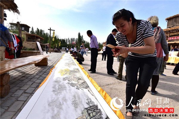 19日上午,在首屆絲綢之路(敦煌)國際文化博覽會(huì)召開之際,由敦煌正覺寫經(jīng)院打造的篆刻《道德經(jīng)》百米長卷在敦煌月牙泉小鎮(zhèn)亮相,“獻(xiàn)禮”文博會(huì)。
