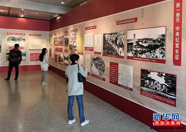 10月8日,參觀者在甘肅省博物館觀看主題展覽。當(dāng)日,甘肅省紀(jì)念紅軍長征勝利80周年主題展覽在甘肅省博物館開展。展覽以“弘揚(yáng)長征精神堅定理想信念”為主題,展示紅軍長征的光輝歷史,展現(xiàn)了紅軍長征的光輝征程。