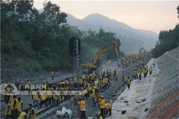 隨著10月11日凌晨線路撥接施工順利完成,貴港(根竹)至玉林段全部52處小半徑曲線改造全部完成,改造工程工作重心轉(zhuǎn)入接觸網(wǎng)架設(shè)、站房改造施工等內(nèi)容。按施工組織方案,預(yù)計(jì)11月份進(jìn)行動(dòng)態(tài)驗(yàn)收、消防等專(zhuān)項(xiàng)驗(yàn)收,12月份進(jìn)行安全評(píng)估,年底開(kāi)通線路。