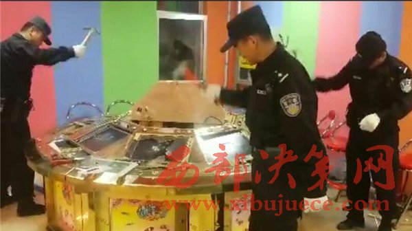 16時整,城關(guān)公安分局治安管理一大隊的警員沖進(jìn)幻影游藝城,當(dāng)場控制各類參賭人員30余人、賭博管理人員十余人,查獲各類熊貓機(jī)、釣魚機(jī)、單挑機(jī)等涉賭機(jī)器72臺,繳獲賭資現(xiàn)金近五萬元。警員在履行執(zhí)法手續(xù)后,對72臺涉賭機(jī)器進(jìn)行現(xiàn)場銷毀,執(zhí)法有序進(jìn)行,未損壞其他無關(guān)設(shè)備設(shè)施。