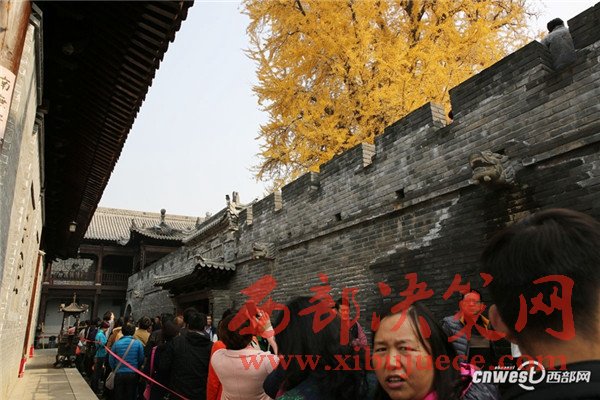 11月15日是周二,但去長(zhǎng)安區(qū)古觀音禪寺看網(wǎng)紅銀杏樹(shù)的游客還是排起了長(zhǎng)隊(duì),進(jìn)入寺廟大門(mén)跟著曲曲折折的隊(duì)伍緩緩移動(dòng)到銀杏樹(shù)前得1個(gè)來(lái)小時(shí)。在銀杏樹(shù)的圍欄里,一名工作人員用喇叭不停地提醒游客加快腳步不要停留。