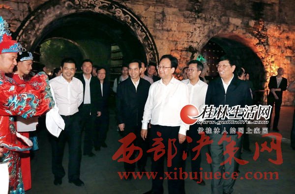 景俊海一行還來到正陽東巷歷史文化街區(qū)進行調(diào)研。經(jīng)過修繕改造后的正陽東巷歷史文化街區(qū),青磚黛瓦、古色古香,夜晚大紅燈籠高高掛起,許多中外游客徜徉其間,仿佛有種時光穿梭之感。景俊海一行沿著古樸的巷子,認真聽取了關(guān)于東巷改造情況介紹,并饒有興趣地參觀了保護修繕后的馬啟邦舊居、岑氏公保弟舊址等。他還登上恢復(fù)重建的桂林逍遙樓,一邊參觀一邊聽取逍遙樓的歷史典故、重建情況等介紹,對桂林市委、市政府實施“尋找桂林文化的力量,挖掘桂林文化的價值”戰(zhàn)略,精心設(shè)計、挖掘和保護桂林歷史文化表示充分肯定。景俊海一行還前往愚自樂園法國地中海俱樂部桂林度假村、“兩江四湖”環(huán)城水系工程、靖江王府、臨桂新區(qū)“一院兩館”(桂林大劇院、桂林博物館、桂林圖書館)、桂林崇華中醫(yī)文化街等文化項目進行調(diào)研。