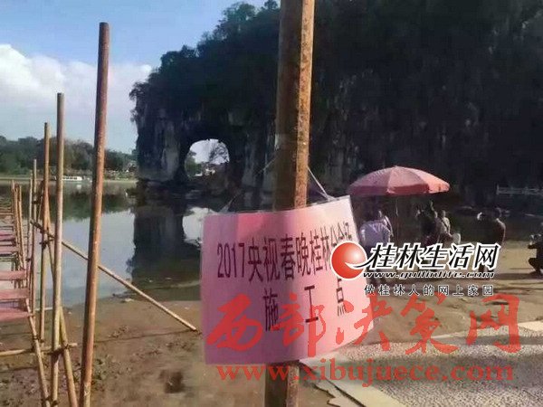 為了真正體現(xiàn)東西南北中,全民大聯(lián)歡,2017年央視春晚延續(xù)2016年春晚特色,特別設(shè)置了東西南北四大分會場,桂林憑借秀美的山水風(fēng)光和厚重的歷史文化底蘊,被確定為2017年央視春晚南方分會場。17日上午,景俊海一行來到2017年央視春晚桂林分會場外景地象山景區(qū)。象鼻山被薄霧籠罩,如夢似幻,漓江煙波渺渺,美不勝收,山水和諧相融構(gòu)成了中國南方最具代表性的自然美景。從11月12日起,春晚桂林分會場舞臺搭建工作已經(jīng)進場,工人正在用一根根鋼管搭建水上舞臺。