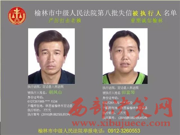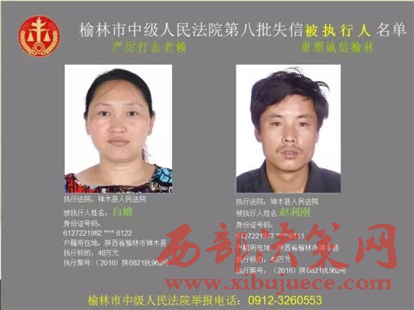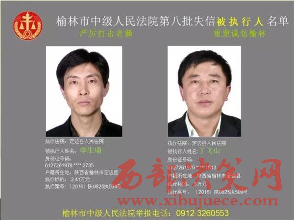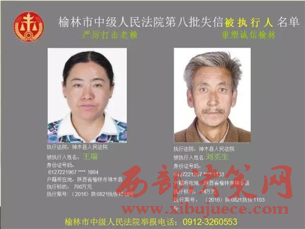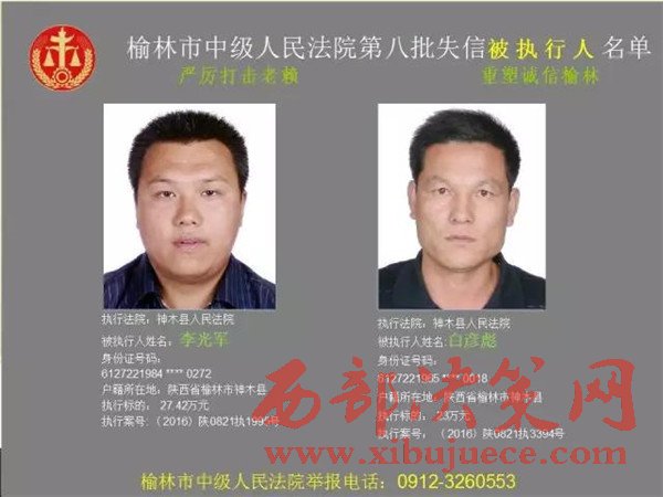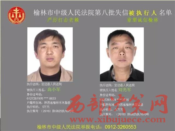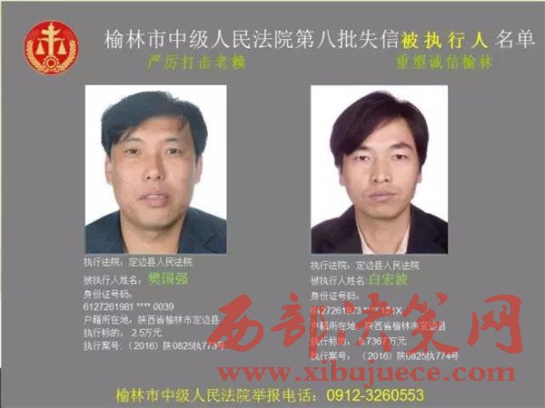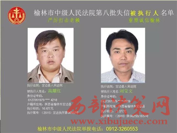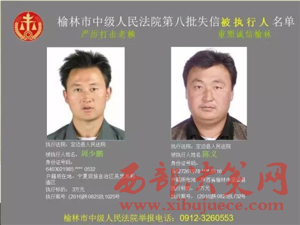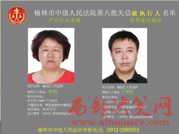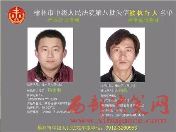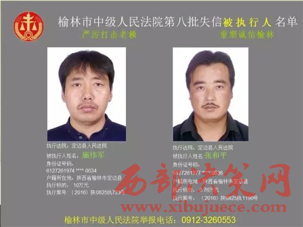 榆林中院最新發(fā)布第八批失信被執(zhí)行人"黑名單"