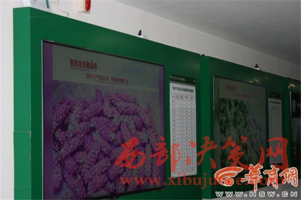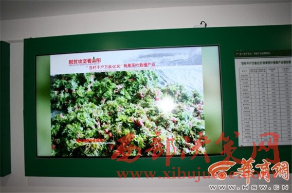 在山陽(yáng)扶貧開發(fā)局辦公場(chǎng)所走廊,一側(cè)墻上安裝有6臺(tái)液晶電視看上去很顯眼,滾動(dòng)播放著扶貧圖片和相關(guān)數(shù)據(jù)。