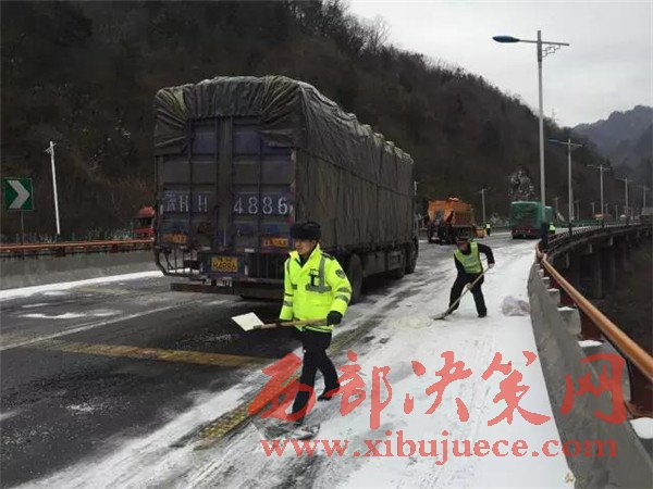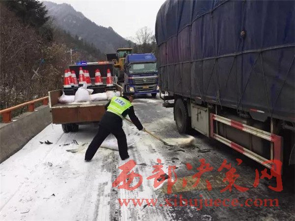 昨天寧陜境內(nèi)持續(xù)發(fā)布寒潮藍(lán)色預(yù)警,連續(xù)的雨雪、降溫、大風(fēng)造成最低溫度降幅10度以上,山區(qū)最低氣溫達(dá)到零下6度,對(duì)交通運(yùn)輸造成了較大影響。由于部分大型運(yùn)輸車輛沒有及時(shí)更換防凍柴油,油路受凍無(wú)法啟動(dòng),部分緩坡路面結(jié)冰,載重車輛原地打滑,還有個(gè)別車輛由于路面濕滑造成的單方交通事故等原因造成了大面積擁堵。