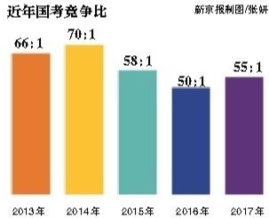 此次國考,共有120多個(gè)中央機(jī)關(guān)及其直屬機(jī)構(gòu)和參照公務(wù)員法管理的單位計(jì)劃招錄2.7萬余人,計(jì)劃招錄人數(shù)與2016年持平。本次國考共有148.63萬人報(bào)名并通過資格審查,較去年的139.46萬人增加了9.17萬,同比增加6.58%。