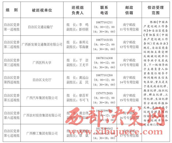 本輪巡視從12月初開始至2017年1月20日結(jié)束,自治區(qū)黨委7個(gè)巡視組將采取“一對(duì)一”方式對(duì)2個(gè)自治區(qū)政府工作部門、1所高校和4家自治區(qū)管理國(guó)有企業(yè)開展專項(xiàng)巡視。