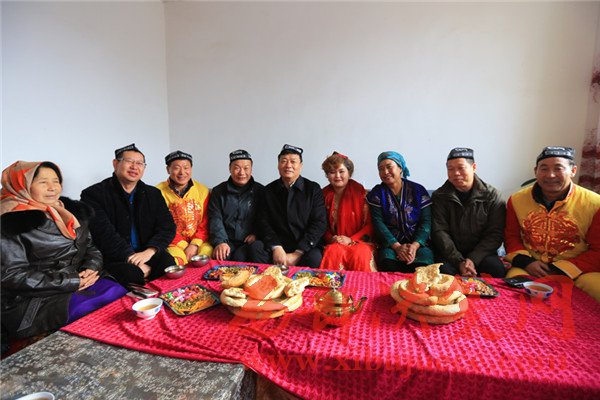 “我‘親戚’的女兒結(jié)婚,這是大喜事!”一大早,博湖縣委書記董斌就來到巴哈爾古麗·吾斯曼家賀喜?;槎Y上,董斌向“親戚” 巴哈爾古麗·吾斯曼及新人送來了祝福,送上禮金,并且表示婚禮辦得熱鬧喜慶,各族群眾互相走動(dòng),互相拜訪,像一家人一樣其樂融融。
