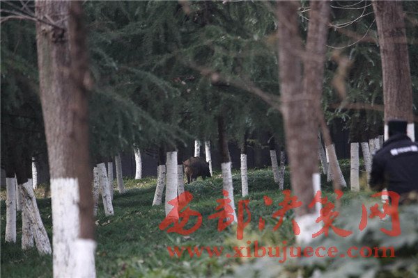 12月7日,安徽合肥,體重近200斤的成年野豬,出現(xiàn)在合肥市包河區(qū)政府大樓院內(nèi),民警兩次鳴槍,合肥市動物園工作人員吹了3針麻醉,“二師兄”愣是不倒。下午15時,包河區(qū)行政中心車來車往,前來辦事的群眾擠滿大廳,很多人并不知道,一只野豬就在附近溜達。“區(qū)政協(xié)一位女領導最先看到,上午7點多,就在國稅局后邊的綠化帶里頭。我也看到了,拿東西攆,它就往西頭跑。跟同事們說,都不相信我,講區(qū)政府怎么可能出現(xiàn)野豬。”物業(yè)師傅一臉認真,恨不得用手在空中畫出野豬的模樣,“我是農(nóng)村過來的,那就是野豬,嘴巴又尖又長的嘛。”上午等保安們反映過來,野豬已經(jīng)不知所蹤,大家便不了了之。結果下午1時許,大家伙又出現(xiàn)了。“先在綠化帶里曬太陽,被我們趕到包河區(qū)檢察院院子里,接著又跑到區(qū)政府東邊的綠化帶里。”