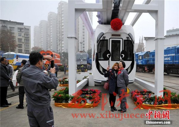 記者在現場看到,正式下線的空鐵車身為卡通熊貓山水圖案,酷似“熊貓”,每列定員144人,時速最高可達65公里。列車采用“大容量動力蓄電池充放電控制技術”,通過實現高倍率放電,提高列車起動加速性能及對極限環(huán)境的適應性,同時能將400千瓦的電制動功率全部用于動力電池快速充電,實現制動能量回收再利用,延長蓄電池續(xù)航里程達120千米。圖為車身外繪制有熊貓山水圖案。