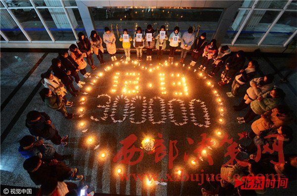 12月12日,江蘇省揚(yáng)州市,揚(yáng)州大學(xué)化學(xué)化工學(xué)院的學(xué)生們在祭奠南京大屠殺死難者。