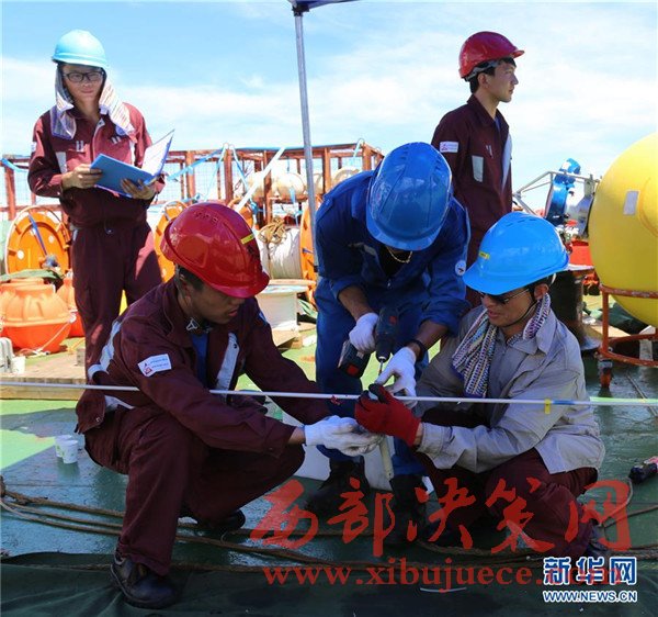 科考隊員在進(jìn)行深海潛標(biāo)布放和回收作業(yè)培訓(xùn)(11月12日攝)。我國遠(yuǎn)洋綜合考察船“科學(xué)”號正在西太平洋執(zhí)行潛標(biāo)觀測網(wǎng)維護(hù)與升級任務(wù)。截至目前,科考隊員已獲取了140余件觀測設(shè)備連續(xù)1年的現(xiàn)場數(shù)據(jù),維護(hù)了8套深海潛標(biāo),并重新布放至西太平洋海域。