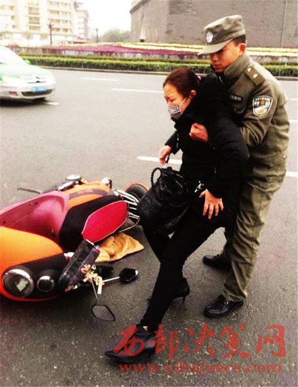 昨天下午,碑林區(qū)城市管理綜合行政執(zhí)法柏樹林中隊(duì)兩名執(zhí)法隊(duì)員在鐘樓開元商城區(qū)域正常開展巡查時(shí),一女子騎著電動(dòng)車被一輛轎車撞倒,執(zhí)法人員迅速?zèng)_上前將其扶到路邊,并報(bào)警。