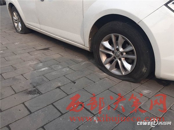 張先生的車就停在錦業(yè)一路上的這個西安市錦業(yè)新居小區(qū)門口,今個出門開車才發(fā)現(xiàn),自己的愛車輪胎被扎破了,而且周圍很多車也遭了秧。