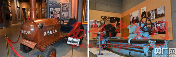 圖(左)1958年,沈陽農業(yè)機械廠制造的新中國第一臺18馬力蒸汽拖拉機。圖(右)1959年,沈陽第一機床廠生產的C650型車床。