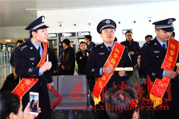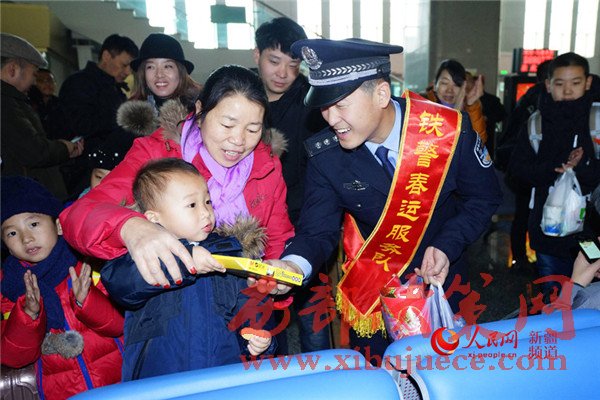 2017年鐵路春運于1月13日正式啟動。為營造春運良好氛圍,確保廣大旅客平安出行,新疆烏魯木齊鐵路公安局哈密公安處從機關和各派出所抽調100余名民警組建了10支“鐵警春運服務小分隊”,在轄區(qū)吐魯番、哈密等四個客運站和八個高鐵站,以開展防盜防騙宣傳、文藝互動演出、親民便民服務等舉措,打造“平安、有序、溫馨”春運。