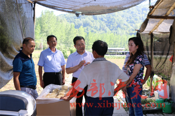 縣委書記演曉剛(左三)深入鎮(zhèn)調研產業(yè)脫貧工作