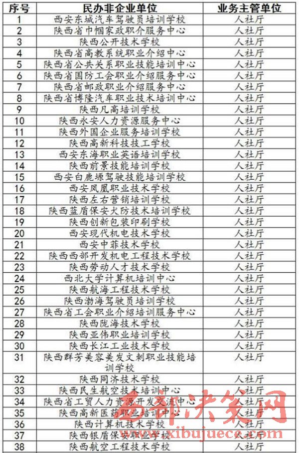 2月8日,陜西省民政廳發(fā)布公告擬對(duì)203家社會(huì)組織予以撤銷(xiāo)登記,名單包括西安東城汽車(chē)駕駛員培訓(xùn)學(xué)校、西北大學(xué)計(jì)算機(jī)培訓(xùn)中心、陜西航空工程技術(shù)學(xué)校、陜西省高校學(xué)生就業(yè)指導(dǎo)培訓(xùn)中心等。名單中的社會(huì)組織在公告起60日內(nèi),可書(shū)面申辯主張權(quán)利。