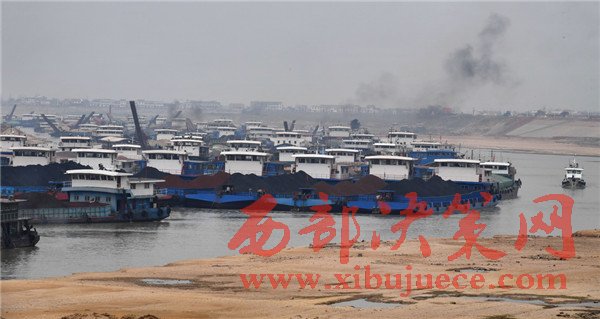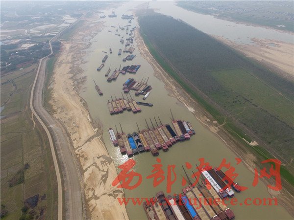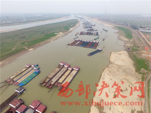 2月20日,船只擁堵在枯水期的湘江湘陰蘿卜洲航道內。