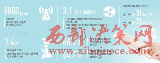 陳肇雄介紹,兩年來,工信部會同有關(guān)部委,扎實推進網(wǎng)絡(luò)提速降費相關(guān)工作落實。圍繞網(wǎng)絡(luò)提速,一是深入推進寬帶中國戰(zhàn)略。兩年內(nèi)基礎(chǔ)電信企業(yè)投資超過8800億元,國家發(fā)改委安排中央預(yù)算內(nèi)投資10億元,專項建設(shè)基金480億元,建成了全球規(guī)模最大的固定光纖和移動4G網(wǎng)絡(luò)。二是加快實施電信普遍服務(wù)。中央財政和基礎(chǔ)電信企業(yè)兩年投資300多億元,支持包括3.1萬個貧困村在內(nèi)的10.1萬個行政村光纖建設(shè)。三是優(yōu)化互聯(lián)網(wǎng)骨干網(wǎng)網(wǎng)絡(luò)結(jié)構(gòu)。擴容骨干網(wǎng)網(wǎng)間互聯(lián)帶寬1562G,新增3個互聯(lián)網(wǎng)骨干直聯(lián)點,總數(shù)達(dá)到了13個。截至2016年年底,全國固定寬帶平均接入速率達(dá)到49M,是兩年前的7.4倍。光纖寬帶用戶占比從34.1%提升到76.6%,進入全球前三位。根據(jù)中國寬帶聯(lián)盟發(fā)布的數(shù)據(jù),我國移動寬帶網(wǎng)絡(luò)用戶平均體驗速率已經(jīng)從3G的3.9M提升到目前4G的11.9M。4G用戶已經(jīng)達(dá)到7.7億戶,占全球4G用戶的一半以上。