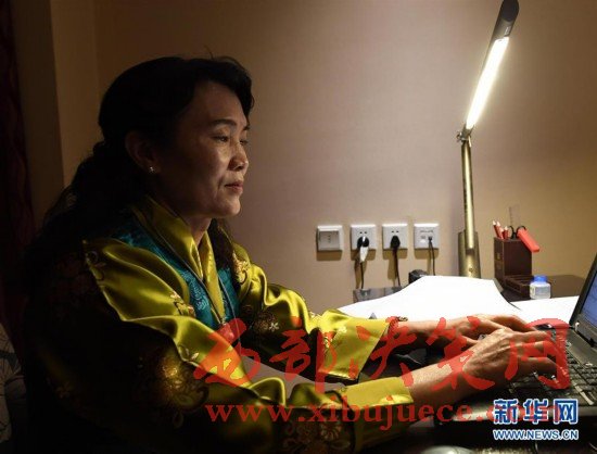 3月7日晚,民族語(yǔ)文翻譯組工作人員劉友珍在翻譯大會(huì)文件。