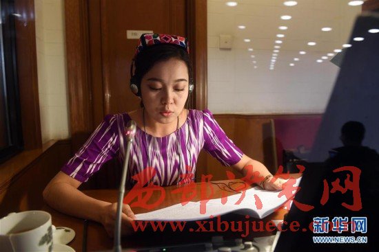 3月5日,民族語(yǔ)文翻譯組工作人員買(mǎi)熱巴·莫合買(mǎi)提在人民大會(huì)堂對(duì)十二屆全國(guó)人大五次會(huì)議開(kāi)幕會(huì)進(jìn)行同聲傳譯。