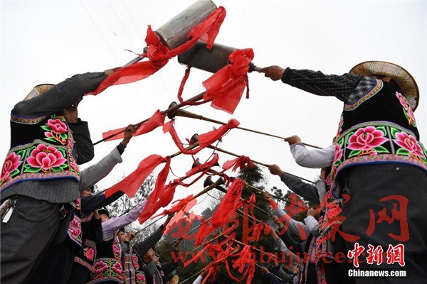 3月12日,民眾正在舉行山歌會(huì)前的祭祀儀式。