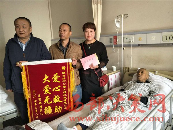 一方有難,八方支援,在王宣珉最困難最需要幫助的關鍵時刻,單位領導和職工伸出援助之手,給予他最大的鼓勵和支持。陜西現(xiàn)代公路工程機械有限公司總經(jīng)理張凌、副總經(jīng)理韓德光和工會主席杜三意受老總陳放委托代表全體員工在3月8日來看望慰問并給王宣珉捐款9350元。