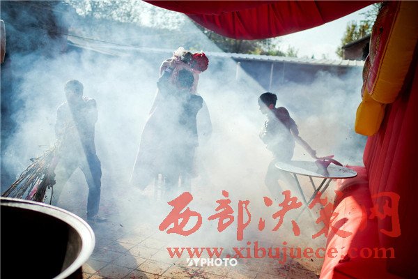 到了新郎家,也還有許多傳統(tǒng)習(xí)俗要完成,為了未來生活美滿幸福,先要驅(qū)邪避災(zāi)。