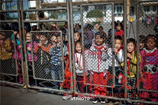 婚禮的車隊(duì)路過一所學(xué)校時(shí),小朋友們也都趴在門上向外張望,不論誰家辦喜事,都是村里的大事了。