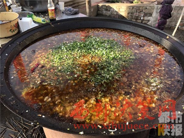 12月4日, 戶縣渭豐鎮(zhèn)元二村,村民們正在興高采烈的烹制著美味大餐,熱鬧非凡,頗有一種過大年的氣氛。熱氣騰騰的臊子面出鍋了,這第一碗面當(dāng)然要親手端給今天這場(chǎng)特殊宴會(huì)的主角——百歲老人段奶奶。