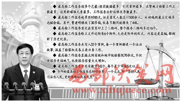 今年的最高檢工作報告,雖然篇幅比去年短約500字,卻創(chuàng)造了多個史上之最——使用數(shù)據(jù)最多、引用案例最多、點贊地方檢察工作次數(shù)最多、運用新媒體元素最多、工作報告出爐后修改條數(shù)最多。