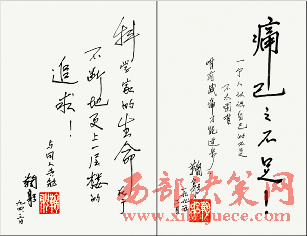 鞠躬院士在自己自傳中寫道:我對自己的評論是無偉業(yè),點燃一支燭光而已??部部揽酪簧?,現(xiàn)在蠟炬已幾乎成灰了。愿我國早日成為培養(yǎng)諾貝爾獲得者的土壤,愿我們世世代代青出于藍勝于藍。