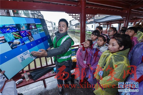 3月22日,織里鎮(zhèn)漾西小學(xué)的孩子們?cè)卩l(xiāng)鎮(zhèn)巡河員及水質(zhì)監(jiān)測(cè)員的陪同下,學(xué)習(xí)水樣采集、排污勘測(cè)等方面的知識(shí)。這些孩子都是當(dāng)?shù)氐?ldquo;小小河長(zhǎng)”,定期負(fù)責(zé)相關(guān)河道的水質(zhì)監(jiān)控。當(dāng)日是第二十五屆“世界水日”,浙江省湖州市吳興區(qū)織里鎮(zhèn)的鎮(zhèn)級(jí)河長(zhǎng)、民間巡河員帶著漾西小學(xué)的“小小河長(zhǎng)”們?cè)诔反迳垩罄锖友鼐€對(duì)河面、河岸保潔情況進(jìn)行勘察、記錄。工作人員還給這些“小小河長(zhǎng)”們上了一堂水質(zhì)監(jiān)測(cè)環(huán)保課,并現(xiàn)場(chǎng)采集水樣進(jìn)行比對(duì),增強(qiáng)相關(guān)理論和實(shí)踐知識(shí)。近兩年來,織里鎮(zhèn)全面推進(jìn)“河長(zhǎng)制”,積極探索治水新模式,在退休干部、黨員、童裝業(yè)主、學(xué)生等各類群體中創(chuàng)設(shè)一批“黨員河長(zhǎng)”“青年河長(zhǎng)”“小小河長(zhǎng)”等,盡可能讓更多的人參與到河道整治、水體治理的工作中。