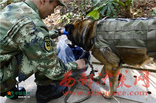 “好樣的,晚上給你加菜!”下午5時(shí)10分,終于在一處枯草前停了下來,訓(xùn)導(dǎo)員上前翻開遮蓋物,臟物、衣服、手套等一包東西出現(xiàn)眼前,任務(wù)圓滿完成!據(jù)悉,“道海”從2012年服役以來,先后出色完成了緝私、緝毒、軍警聯(lián)勤等20多項(xiàng)機(jī)動(dòng)任務(wù),多次榮立戰(zhàn)功,受到上級(jí)嘉獎(jiǎng)表?yè)P(yáng),是名副其實(shí)的“功勛犬”。