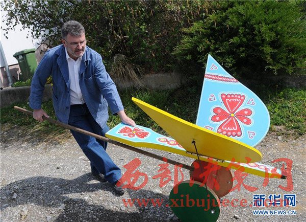 4月12日,在克羅地亞的比斯特里察,玩具制作者梅薩爾調試一件大型木制玩具。