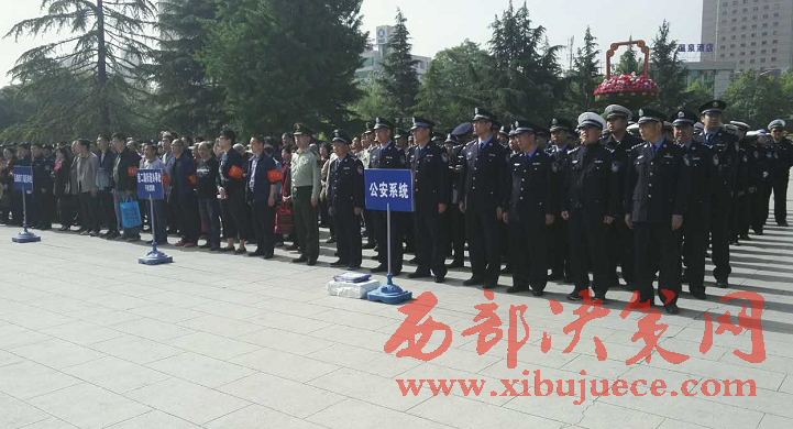 西部決策網(wǎng)-西部大開發(fā)訊(帥華鋒 杜杰)5月6日上午,渭濱區(qū)在炎帝園廣場隆重舉行打造“經(jīng)二路平安示范一條街” 夏季攻堅(jiān)行動(dòng)推進(jìn)會,市委政法委及區(qū)委、區(qū)人大、區(qū)政府、區(qū)政協(xié)相關(guān)領(lǐng)導(dǎo)出席現(xiàn)場,公安、執(zhí)法、區(qū)級部門、平安單位、社區(qū)志愿者組成五個(gè)方陣共300余人參加會議。