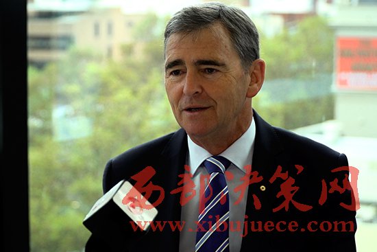 澳大利亞中國工商業(yè)委員會(huì)主席、維多利亞州前州長約翰·布倫比接受記者采訪
