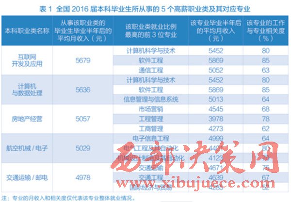 近日,麥可思研究院發(fā)布了一份有關(guān)中國大學畢業(yè)生收入情況的調(diào)查報告。數(shù)據(jù)顯示,在2016屆本科畢業(yè)生從事的職業(yè)類別中,“互聯(lián)網(wǎng)開發(fā)及應(yīng)用”領(lǐng)跑職業(yè)高薪榜,畢業(yè)半年后平均月薪達5679元,此外,“房地產(chǎn)經(jīng)營”也在高薪榜前列。