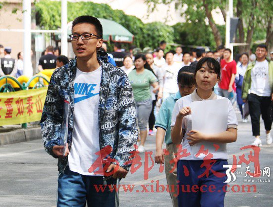 高考首日,新疆考生走出考場(chǎng)。