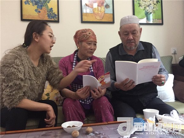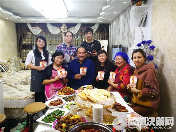 傍晚,一大群來自不同民族,不同單位的新疆兒女聚在了一起,紛紛加入到這個民族團(tuán)結(jié)的大聚會里,彈一首歡快悅耳的冬不拉,舞一曲深情優(yōu)美的賽乃姆,唱一首民族團(tuán)結(jié)的贊歌,將整個聚會推向高潮。賽買提·阿合買提高興地說:“我今天太開心了!這個結(jié)婚紀(jì)念日太有意義了,你的親戚,我的親戚,變成了我們的親戚,以后這就是你們的家,你們要經(jīng)常來?。?rdquo; 趁著大家都在興頭上,韓莉書記又拿出學(xué)校專門印制的《不忘初心 牢記使命-黨的十九大精神進(jìn)校園讀本》,熱情地為親戚們宣傳起十九大精神,給大家講起黨的好政策來。在得知艾來提·賽買提目前還沒有找到合適的工作,沒有穩(wěn)定收入的情況后,大家立刻表示愿意幫助他早日找到合適的工作,幫助他們解決最實際的困難,把溫暖送到他們的心坎中。大家唱唱跳跳,說說笑笑,其樂融融,在互幫互助中讓民族團(tuán)結(jié)之花越開越艷。
