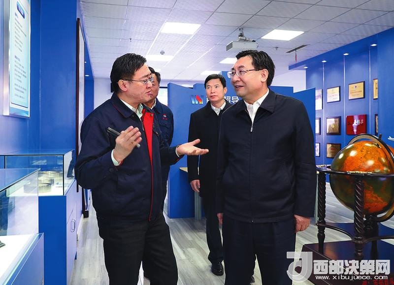 12月14日,省委書記、省長胡和平深入西北有色金屬研究院調(diào)研。圖為他在西部超導(dǎo)材料科技股份有限公司產(chǎn)品展示室聽取產(chǎn)品性能、應(yīng)用領(lǐng)域等介紹。陜西日報記者宋紅梅攝