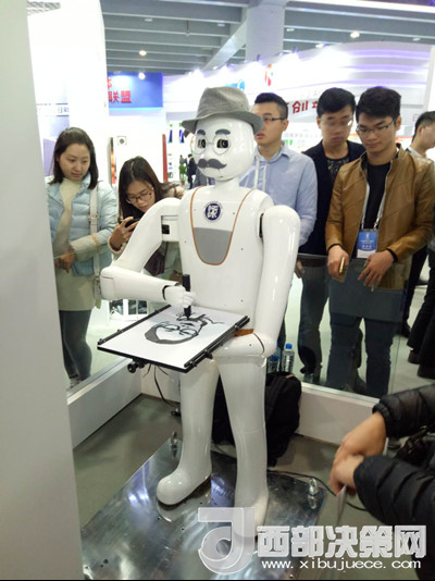 海外人才科技成果展區(qū)展出的賽大千智能畫像機(jī)器人